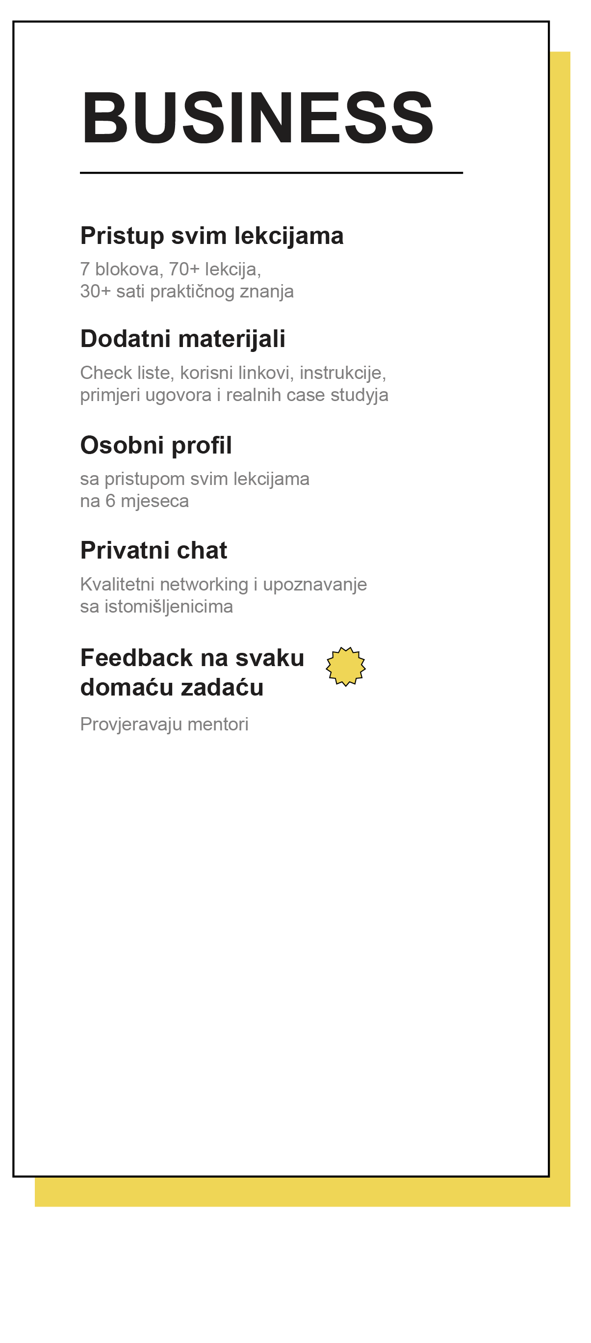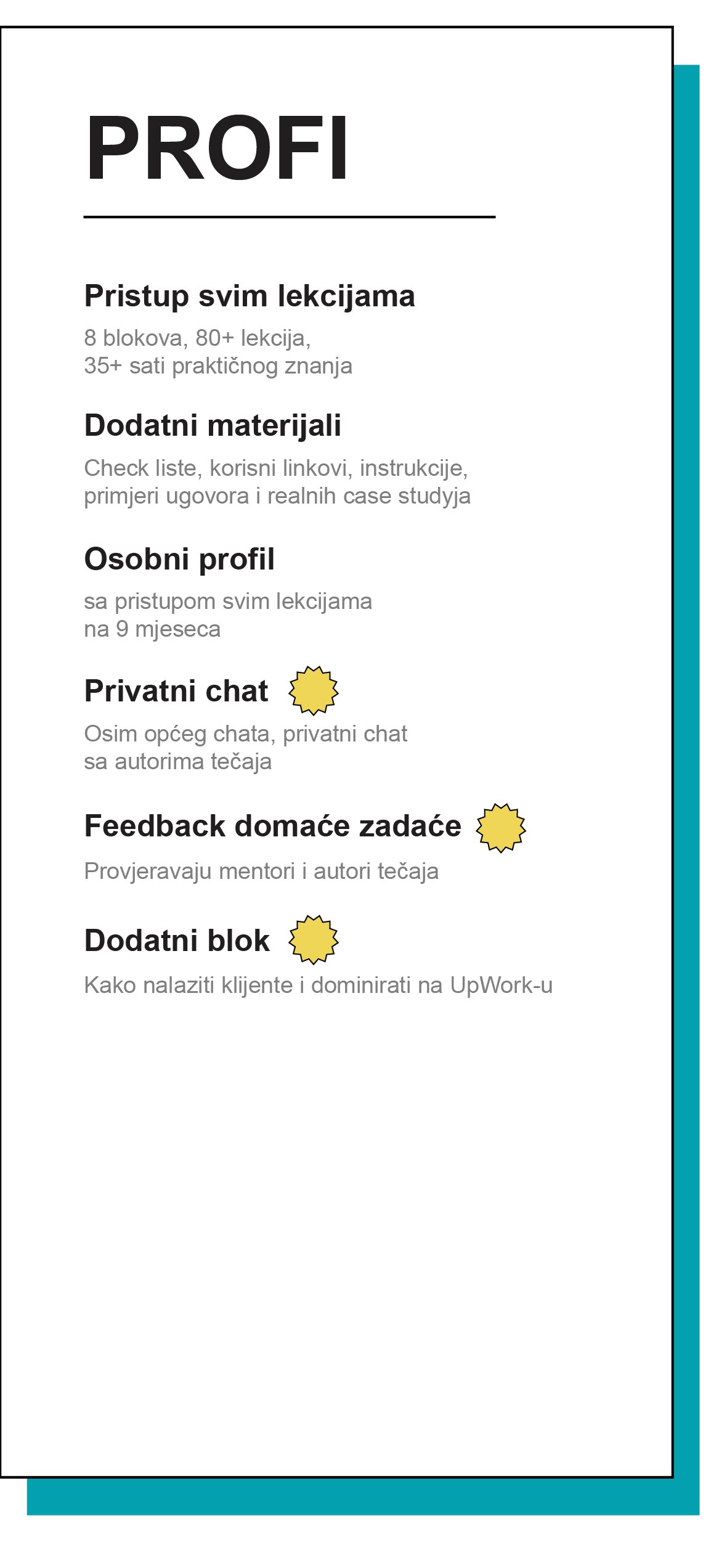 pronalazite svog prvog klijenta, analizirate i oblikujete profile, savladavate prodajne alate putem osobnog i komercijalnog Instabloga, učite kako angažirati i zadržati publiku, sastavljate content planove.